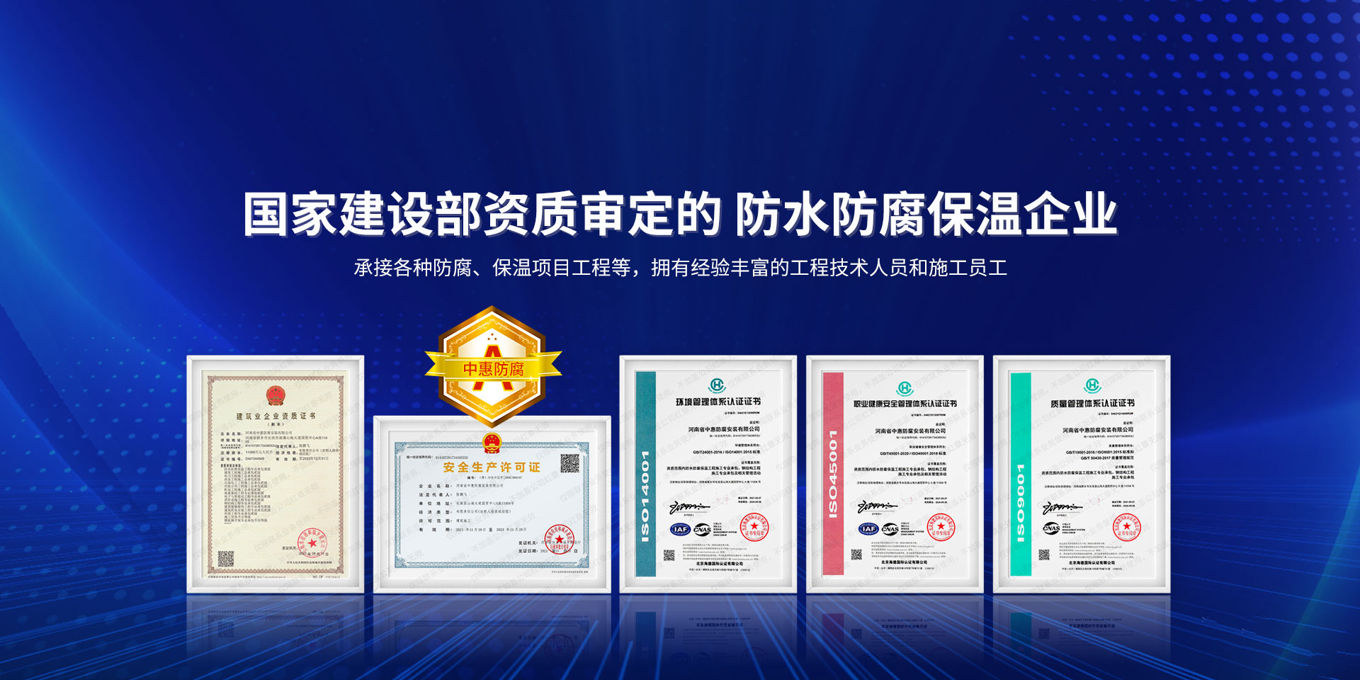 公司經營范圍:防水防腐保溫工程;消防設施工程;建筑裝修裝飾工程;建筑機電安裝工程;電力工程;建筑工程;石油化工工程;工業清洗工程;油罐清洗工程;鋼結構工程;環保工程;模板腳手架工程;電纜防火封堵、防污閃噴涂、外墻外保溫工程;各類施工勞務作業;設備維修、船舶鉚焊、涂裝;電力工程材料、建材、防水材料、防火材料、防腐保溫材料銷售,并相繼通過了GB/T19001-2008idtISO9001:2008GB/T50430-2007質量管理體系認證證書。GB/T24001-2004idtISO14001:2004環境管理體系認證證書。GB/T28001-2011idtOHSAS18001:2007職業健康安全管理體系認證證書。公司是中國防腐蝕于防護協會、中國施工企業管理協會、電力協會和中國鋼結構防水協會會員單位。 公司的經營業務涵蓋了石油、化工、電力、冶金、煤炭、船舶、國防、燃氣、水利、環保、交通運輸、航空及國防軍工和輕紡市政等行業的防腐保溫絕熱設備。鋼結構安裝、防火、防水、金屬噴鍍、聚脲噴繪、陰極保護、防滲透堵漏、玻璃鋼及各種磚版材料襯里、橡膠襯里、煙氣硫和耐酸溶劑腐蝕等工程施工。公司連續十年榮獲“省市先進施工企業”“安全生產先進單位”“重合同,守信用企業”和“AA***資質企業”的稱號。2000年被命名為市級文明單位,2002年被國家工商行政管理局命名為“重合同,守信用的企業”、被中國工業防腐蝕技術協會命名為“防腐蝕企業,能源節約及環境保護領域有豐富的經驗和***的業績。工程一次交驗合格率100%。其中攀枝花鋼鐵公司煉鐵廠四號高爐及熱風爐防腐工程、上海寶鋼公司煤氣柜防腐工程、撫順石油一廠裝置防腐項目、齊魯石化公司稀烴廠高塔防腐工程、吉林化學工業公司煉油廠油罐防腐工程、天津石化熱電廠六號爐頂棚聯絡管保溫工程、大慶油田(太倉)力神泵業工程、中國化學工程第十一建設工程、中原油田勘探局工程、中國石化銷售有限公司華北分部、魯皖輸油管道工程、貴州開磷息烽合成氨工程、陜西黃陵煤化工程、中國石油天然氣西部管道塔里木輸油工程、邯鋼集團邯寶鋼鐵公司煉鐵工程、德州供電工程、吉寶(南通)船廠工程,偃師華潤熱力工程、鄭州熱力總公司。 河南省中惠防腐安裝有限公司愿以豐富的施工經驗,***的技術,***的設備,***的管理,***的服務,竭誠為國內外廣大的用戶提供***滿意、******的工程作品。 我公司愿與國內外同仁一道,團結協作,共同推進防腐蝕行業發展! 公司地址:河南省長垣縣建設路北段360號 固定電話:0373-8866488 郵編:453400 網址:http://www_zhff_com_cn.myshuba.com
